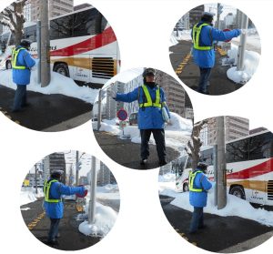 その裏側で、来場者の安心を支えているのが各JV警備協力会社であり、全道警備センターは、雪まつり期間中、観光バス乗り場の警備を担当しています。